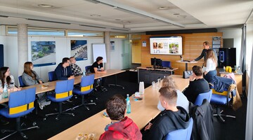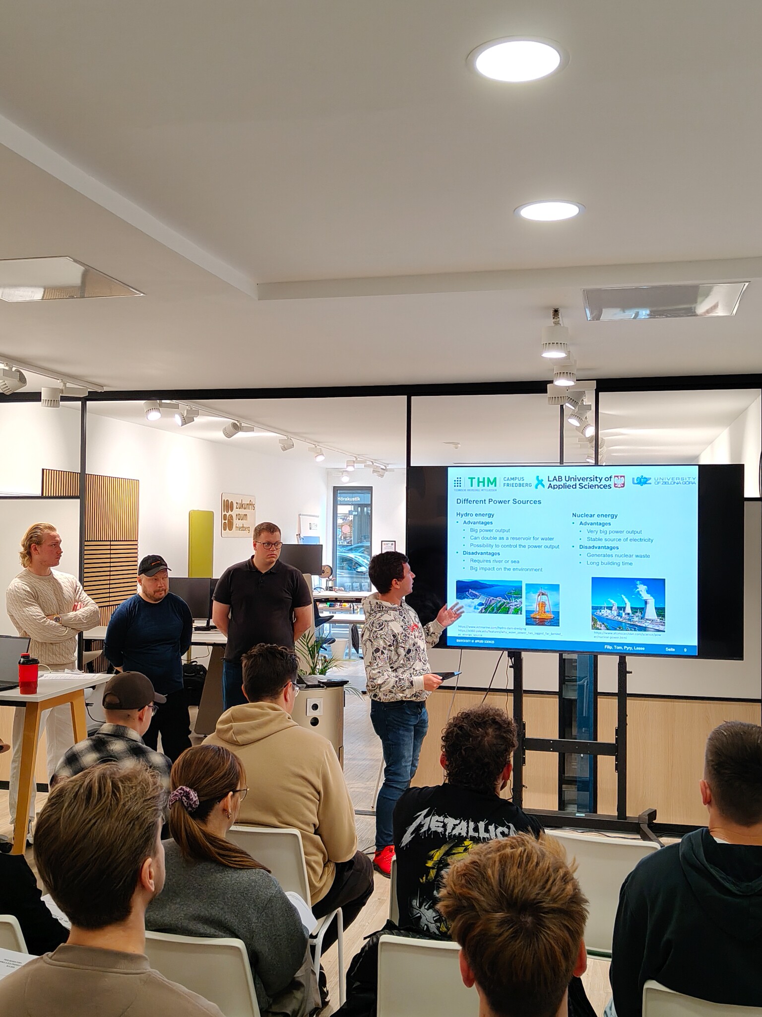 Podczas pobytu stacjonarnego zorganizowanego przez Wydział Inżynierii Gospodarczej (Campus Friedberg THM) studenci zostali podzieleni na tematyczne międzynarodowe zespoły, w których łączyli wyniki zadań indywidualnych, analizowali dane lokalne oraz oceniali potencjalne rozwiązania pod kątem ich zalet i ograniczeń. Efektem współpracy było przygotowanie wstępnej koncepcji tematycznej oraz prezentacji podsumowującej.