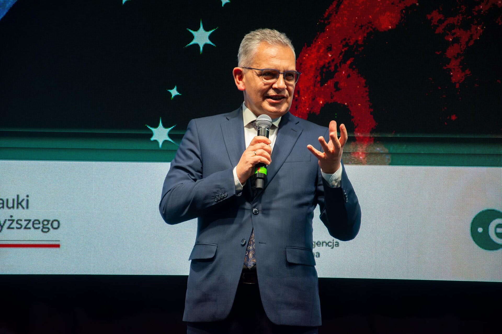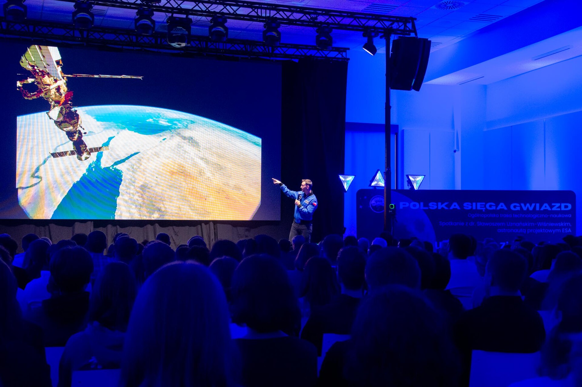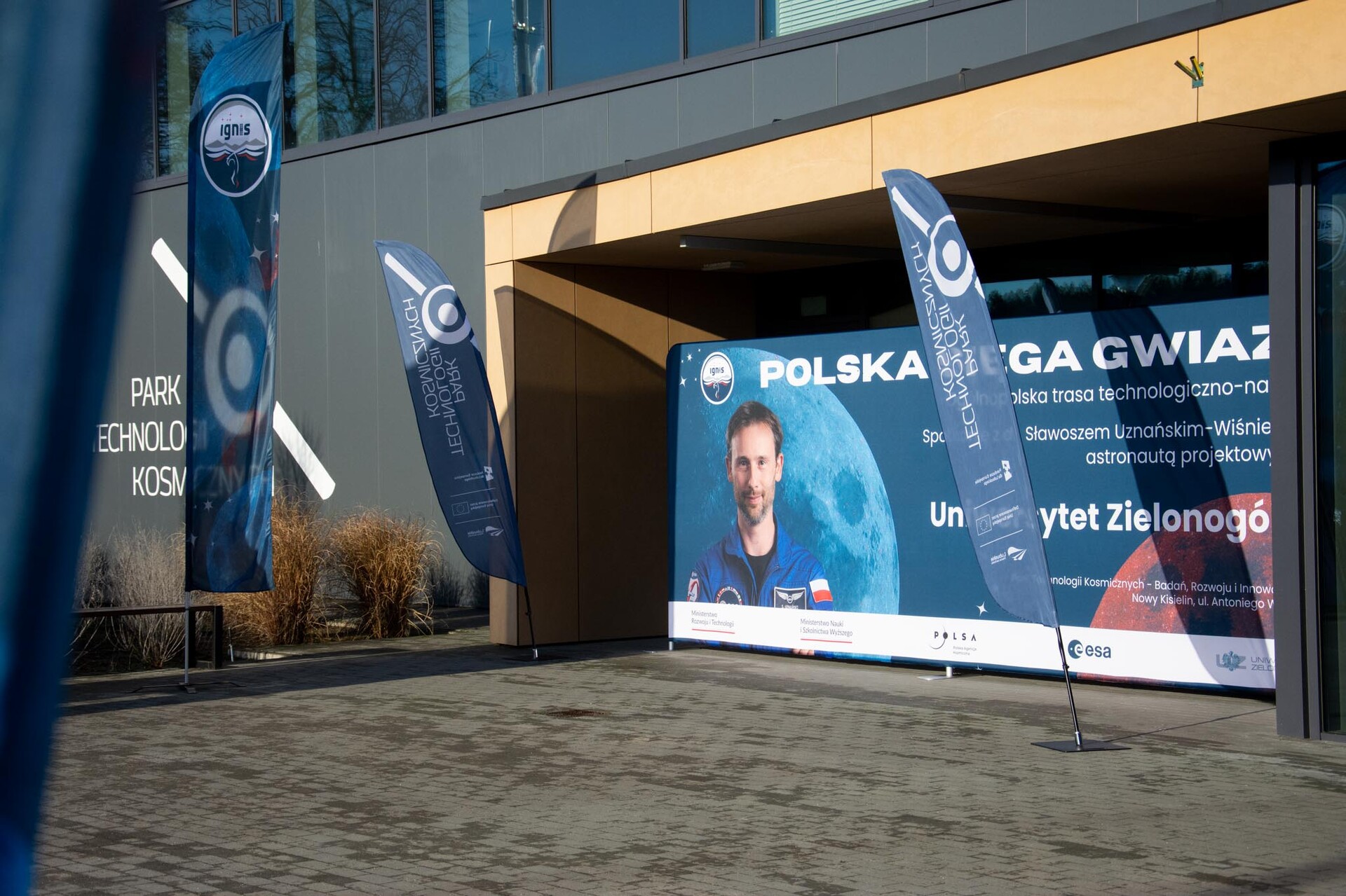 11 grudnia br. przeżyliśmy wspólnie wiekopomny moment. Zieloną Górę odwiedził bowiem Sławosz Uznański-Wiśniewski - astronauta projektowy Europejskiej Agencji Kosmicznej (ESA). Spotkał się on ze społecznością akademicką, uczniami szkół podstawowych i ponadpodstawowych oraz przedstawicielami władz uczelni i regionu. Zapisy na wydarzenie zostały wyczerpane z prędkością światła. Wiele osób chciało zobaczyć człowieka, który zapisał się na kartach historii jako drugi Polak, który poleciał w kosmos. Ci, którzy nie mogli uczestniczyć w wydarzeniu osobiście, śledzili jego przebieg online dzięki transmisji.