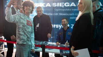 Sławosz Uznański-Wiśniewski z pasją, iskrą w oczach i uśmiechem na twarzy opowiedział o swojej misji, przygotowaniach do niej, przeprowadzonych eksperymentach i wielu innych ciekawostkach z życia astronauty. Z chęcią i zaangażowaniem odpowiadał też na pytania publiczności, a tych nie brakowało! Można było także zdobyć autograf i zrobić pamiątkowe zdjęcie.