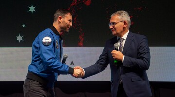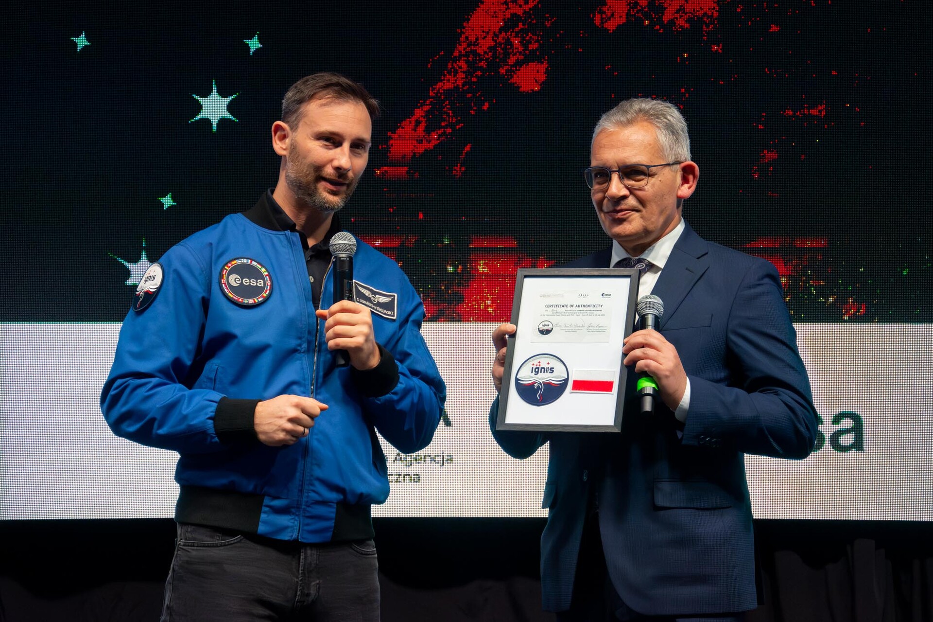 Podczas uroczystości astronauta wręczył prof. Wojciechowi Strzyżewskiemu - rektorowi UZ flagę i patch misji wraz z certyfikatem, a sam otrzymał m.in. statuetkę Przyjaciela UZ w postaci bachusika UZetikusa. Ze sceny przemówiła również prof. Maria Mrówczyńska - Wiceminister Nauki i Szkolnictwa Wyższego, która wyraziła radość, że Sławosz Uznański-Wiśniewski odwiedził jej miasto i uczelnię.