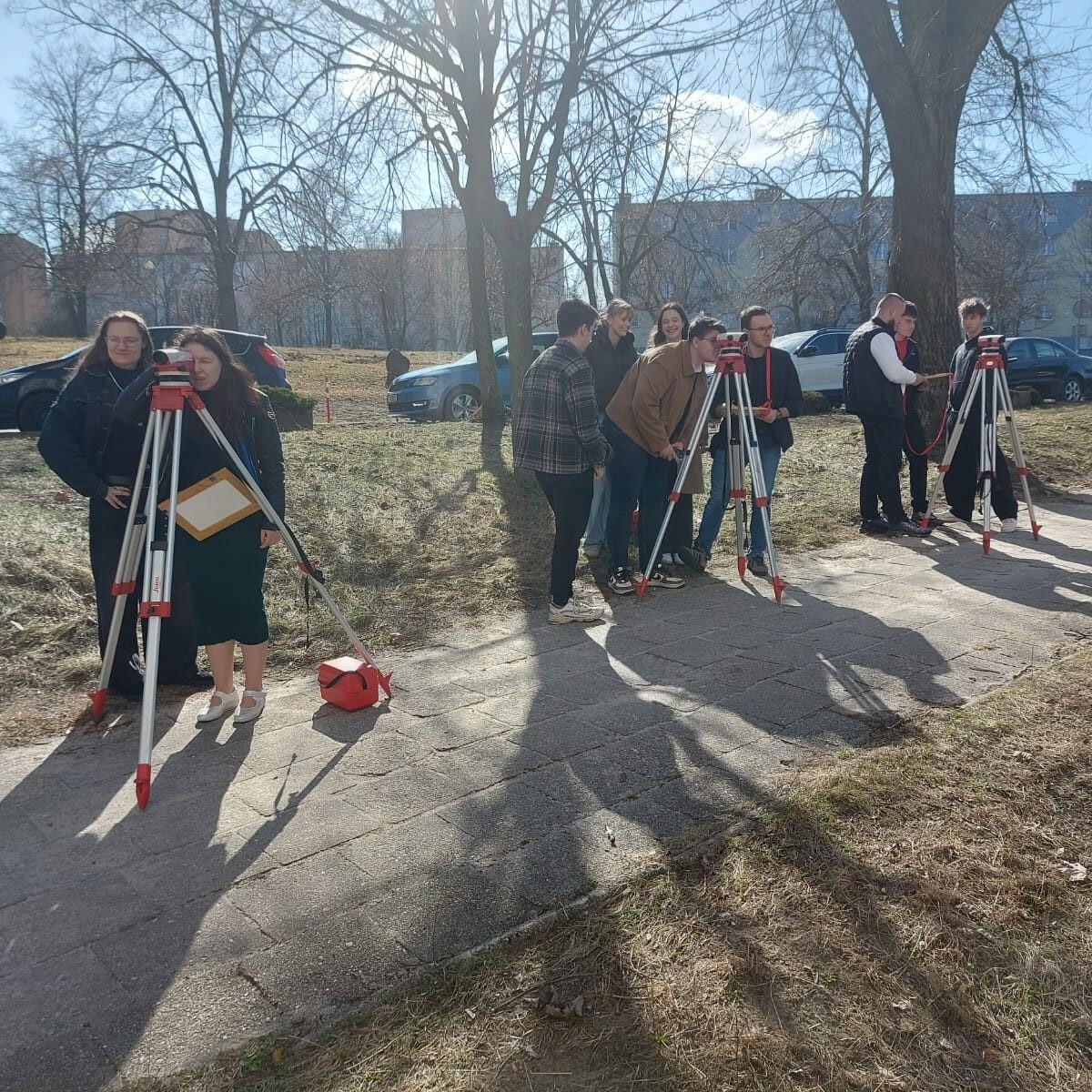 Wraz z nadejściem wiosny studenci I roku budownictwa zaczęli aktywnie działać w terenie! Z zapałem uczestniczyli w zajęciach terenowych z geodezji, prowadzonych przez dr inż. Sławomira Gibowskiego. W ten sposób teoria spotkała się z praktyką. Co więcej, studenci przekonali się, że dokładność, współpraca i dobra pogoda sprzyjają nauce.