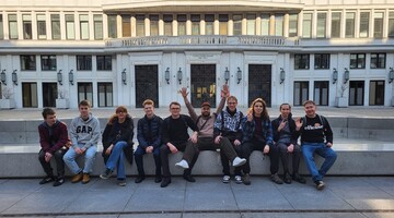 Drugi dzień również dostarczył studentom wrażeń. Rozpoczęli go bowiem od wizyty w Sejmie i Senacie RP, poznając od środka funkcjonowanie najważniejszych instytucji państwowych. Kolejnym punktem programu była wizyta w Pałacu Rzeczpospolitej, a całość zwieńczyli wieczornym spacerem i wyjątkowym widokiem z placu Marszałka Józefa Piłsudskiego.