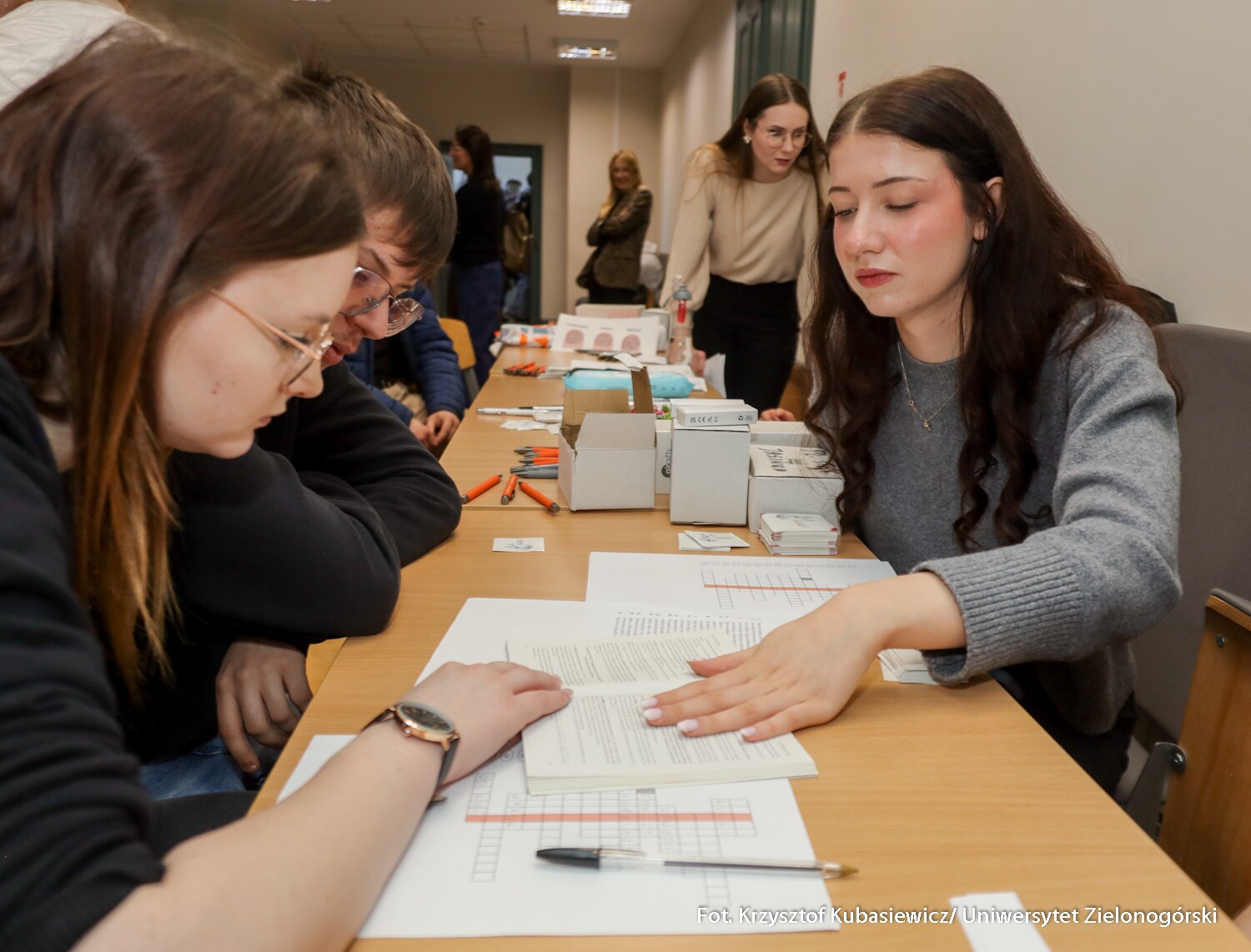 Członkowie studenckiego Koła Naukowego Edytorów „Następny Akapit” odwiedzili Oficynę Wydawniczą UZ. Gospodarze przyjęli ich z uśmiechem i opowiedzieli o AI, typowych błędach, współpracy z autorami, osobliwych literówkach, znakach korektorskich, bękartach, sierotach, wątkach w składzie komputerowym i wielu wyzwaniach edytorskich.