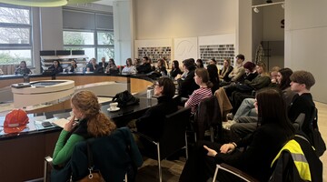Studenci zwiedzili gabinety szefostwa wydawnictwa, redaktora językowego, redaktora technicznego i operatora składu komputerowego, a także warsztaty – najpierw poligraficzne (również ten już zabytkowy), a następnie introligatorski.
