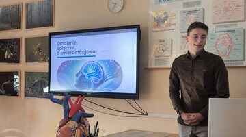 Igor Korszun - student II roku kierunku lekarskiego wraz z dr n. med. Bartoszem Kudlińskim odwiedził Liceum Ogólnokształcące im. KK Baczyńskiego w Nowej Soli. Panowie poprowadzili prelekcję i warsztaty dla uczniów.