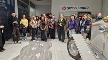 Studenci architektury wnętrz uczestniczyli w specjalistycznym programie szkoleniowo-edukacyjnym zorganizowanym na terenie fabryki SWISS Krono Polska w Żarach. Mieli wówczas okazję zapoznać się z technologią produkcji materiałów stosowanych w projektowaniu wnętrz i mebli oraz zobaczyła z bliska proces ich powstawania.