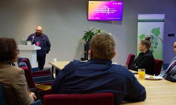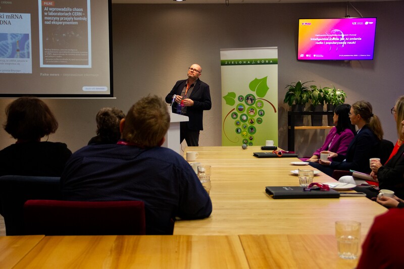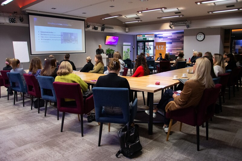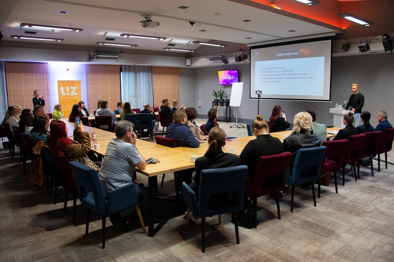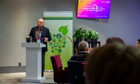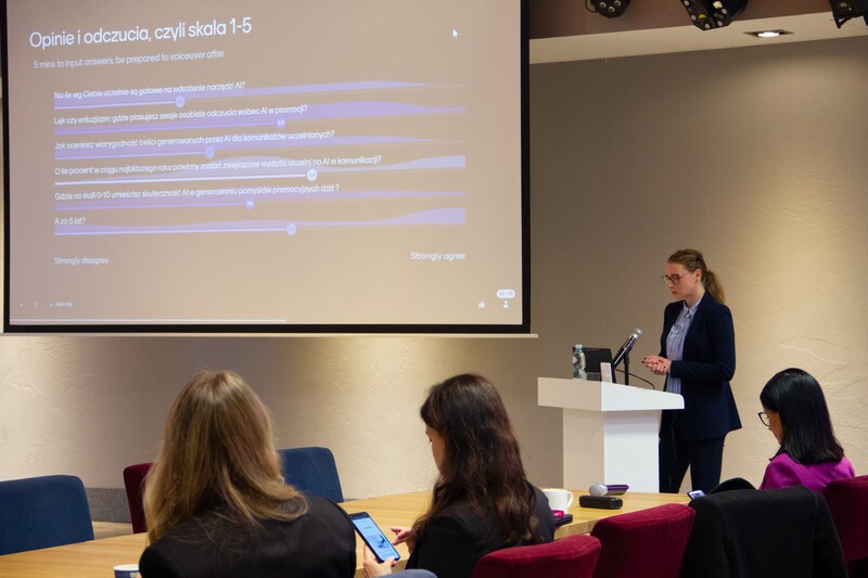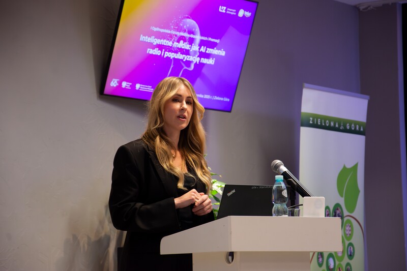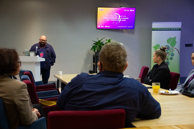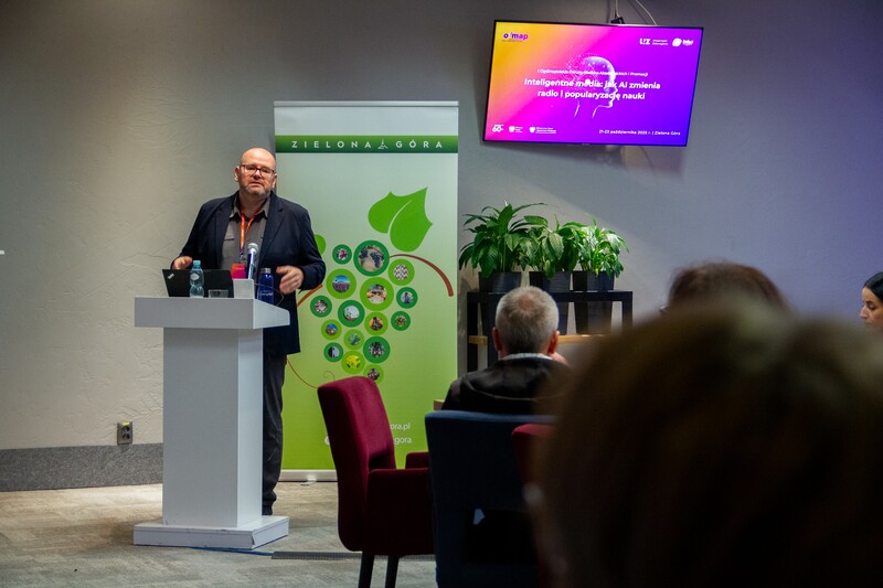 Pracownicy działów promocji uczelni wyższych i mediów akademickich z całej Polski zebrali się w Zielonej Górze, by porozmawiać o tym, jak zmienia się ich praca w branży kreatywnej i mediach oraz sposób popularyzacji nauki w dobie Internetu, a przede wszystkim sztucznej inteligencji. Podczas dwóch wykładów dołączyła do nas również grupa studentów II roku dziennikarstwa i komunikacji społecznej oraz I roku dziennikarstwa i nowych mediów z UZ. Tematy poruszone podczas konferencji dotyczyły skutecznego docierania z przekazem naukowym do szerokiej publiczności, tworzenia angażujących treści w mediach tradycyjnych i cyfrowych oraz przeciwdziałania dezinformacji.