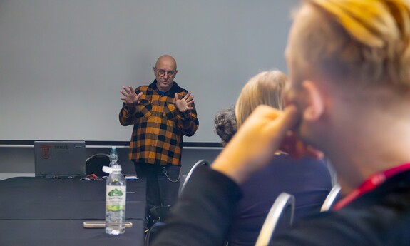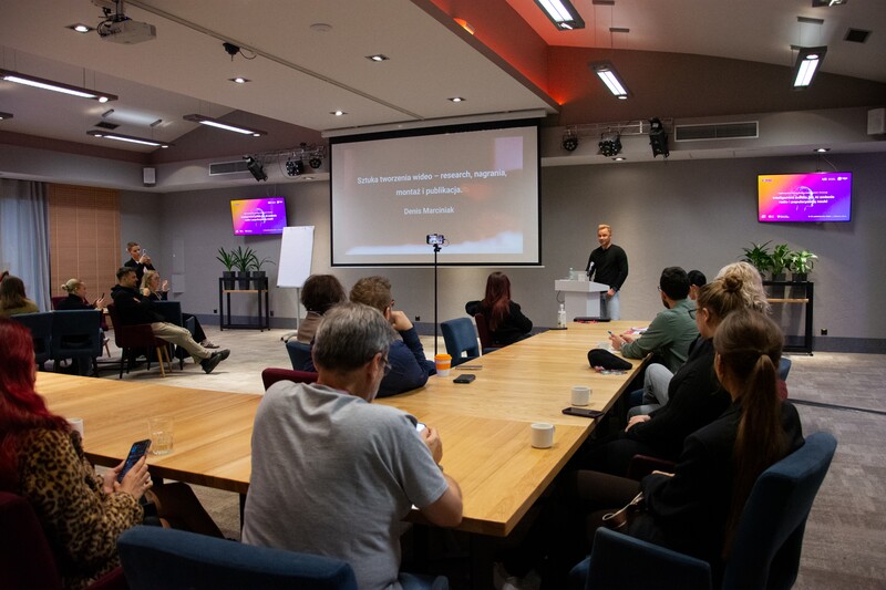 Kamera, światła, akcja - ostatni dzień forum zaczął się od wykładu na temat kręcenia zasięgowych filmów. W swoim wystąpieniu ph. „Sztuka tworzenia wideo – research, nagrania, montaż i publikacja” Denis Marciniak (absolwent UZ, doświadczony twórca wideo) przedstawił cenne wskazówki i wytyczne dotyczące każdego etapu pracy nad filmem. Poznaliśmy zarówno podstawy, takie jak odpowiednie warunki do nagrań, jak i zaawansowane metody, jak np. wykorzystanie AI jako asystenta w produkcji wideo. Jak przyznał D. Marciniak, sztuczna inteligencja wcale nie musi odbierać nam kreatywnych zadań (zwłaszcza, że często wykonuje je nie po naszej myśli), może za to usprawnić realizację powtarzalnych czynności, zbierać oraz analizować dane i statystyki czy też optymalizować treści pod wyszukiwarki internetowe. Samo wideo jako środek przekazu już od kilku lat wiedzie prym w mediach internetowych i z całą pewnością pozostanie również komunikacją przyszłości. Za pomocą dobrze zmontowanego filmu o wysokiej jakości i ciekawym przekazie można dotrzeć do różnych grup docelowych, również w obszarze nauki i edukacji.