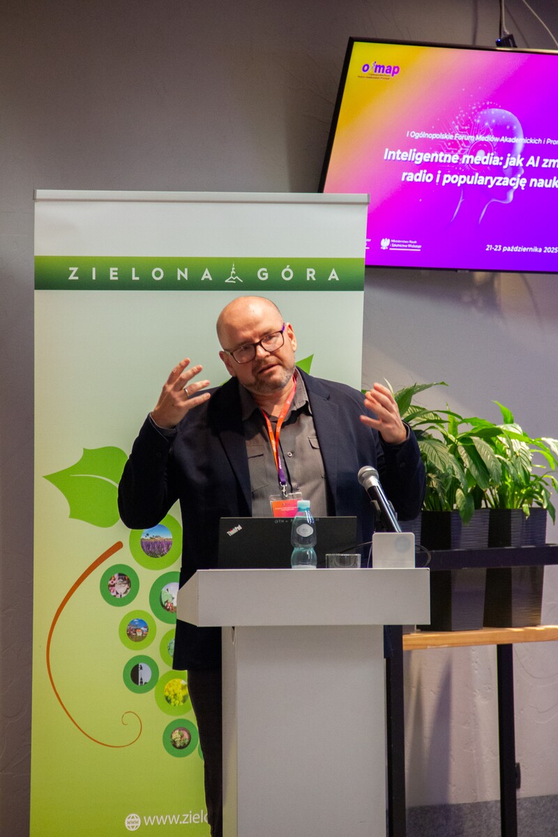 W dniach 21-23 października br. Biuro Promocji Uniwersytetu Zielonogórskiego i Akademickie Radio Index zorganizowały I Ogólnopolskie Forum Mediów Akademickich i Promocji. Debiutancka edycja wydarzenia odbyła się pod hasłem „Inteligentne media: jak AI zmienia radio i popularyzację nauki”, łącząc tradycyjne formy przekazu z nowymi technologiami. W programie znalazły się inspirujące prelekcje, praktyczne warsztaty i dyskusje z ekspertami. Dziękujemy za cenną wymianę doświadczeń i dobrych praktyk!