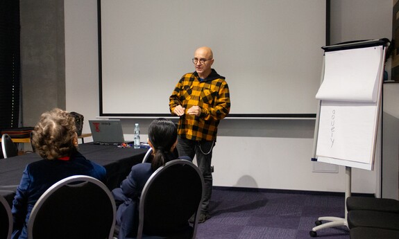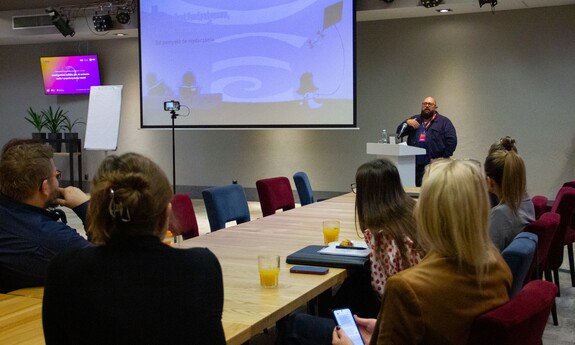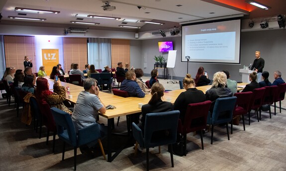 Podczas drugiego z warsztatów uczestnicy dowiedzieli się, jak szlifować dykcję i wymowę oraz jak nauczyć się po prostu ładnego i płynnego wypowiadania się, które wielokrotnie przydaje się podczas prezentacji, wykładów, pracy w mediach czy prowadzenia zajęć. W wystąpieniu ph. „Wyraźnie, pewnie, naturalnie – dykcja w służbie komunikacji”, Artur Beling z Mediów Akademickich UZ zdradził przydatne techniki i ćwiczenia, zwrócił uwagę na często popełniane błędy i pokazał, jak je wyeliminować. Jak przekonali się uczestnicy, wypracowanie umiejętnego i poprawnego komunikowania się wpływa na pewność siebie podczas wystąpień publicznych, a ich jakość z kolei decyduje o wrażeniu, jakie robi się na odbiorcy. A. Beling zapewnił, że wszystko da się wyćwiczyć czy poprawić. Wystarczy odpowiedni trening i pozytywne nastawienie. Dobra prezentacja i swobodne posługiwanie się słowem działa jak magia - zwiększa efekt perswazji, co jest podstawą efektywnego marketingu.