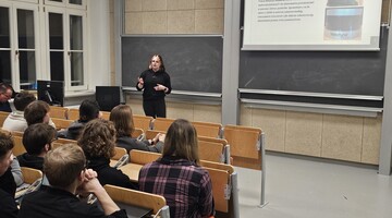 Następnie nasi reprezentanci odwiedzili Wydział Matematyki Politechniki Wrocławskiej, gdzie odbyło się spotkanie o charakterze integracyjnym i naukowym, poświęcone prezentacji działalności studenckich kół naukowych oraz nawiązaniu współpracy międzyuczelnianej. Wizyta ta była dla członków koła cennym doświadczeniem pozwalającym wymienić inspiracje badawcze oraz poszerzyć perspektywę działań.