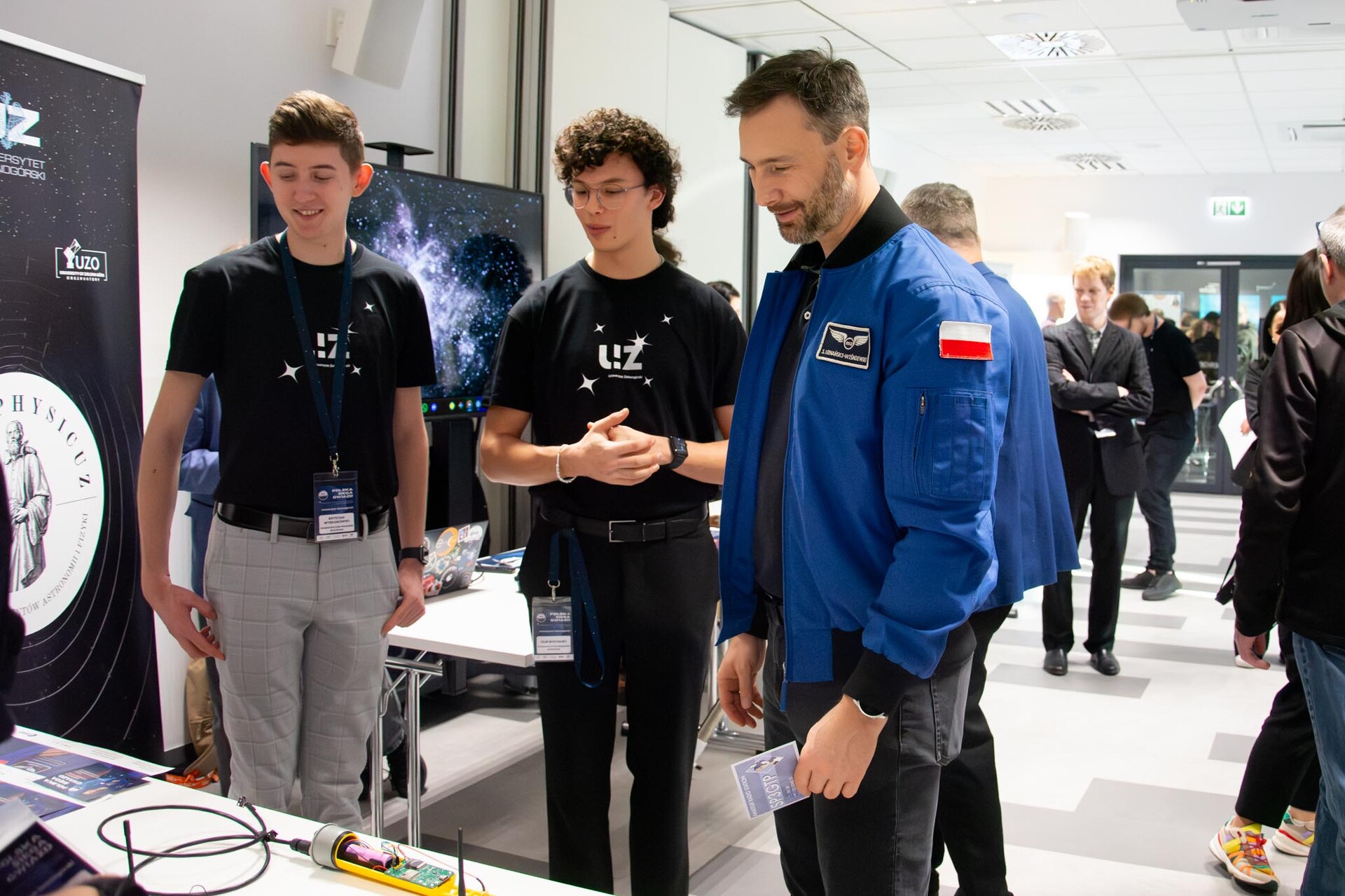 Ważną częścią wydarzenia były również koła naukowe UZ. W jednej z sal uczniowie szkół mogli skorzystać ze wspaniałych atrakcji przygotowanych przez koła działające w zakresie nauk społecznych, ścisłych i przyrodniczych oraz inżynieryjno-technicznych. Z kolei z kołami związanymi z kosmosem oraz szeroko pojętymi nowymi technologiami spotkał się sam Sławosz Uznański-Wiśniewski. Studenci mieli wówczas zaszczyt przedstawić swoje sukcesy i innowacyjne projekty osobie, która jest dla nich autorytetem. Był to dzień pełen inspiracji, wiedzy i nieziemskich wrażeń!