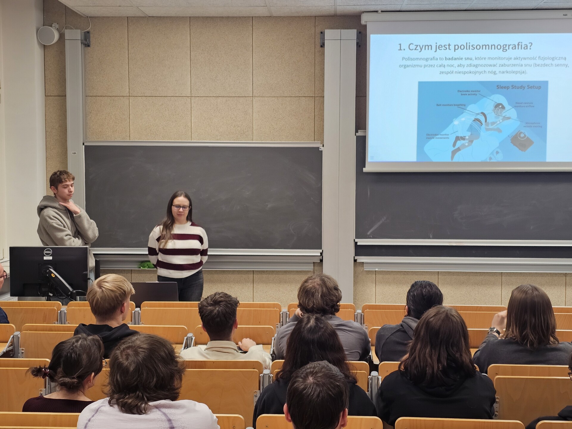 Podczas wydarzenia nasi studenci zaprezentowali trzy wystąpienia. Laura Urban, Nikita Piątkowiak oraz Marta Romanowska omówiły temat „Cyfrowa równowaga. Edukacja zdrowotna w świecie nadmiaru ekranów”, Paula Stoppa opowiedziała o „Profilaktyce demoralizacji nieletnich w kontekście zdrowia młodzieży”, a Ullyana Gnatyuk wygłosiła wystąpienie pt. „(Nie)winny mózg nastolatków”.