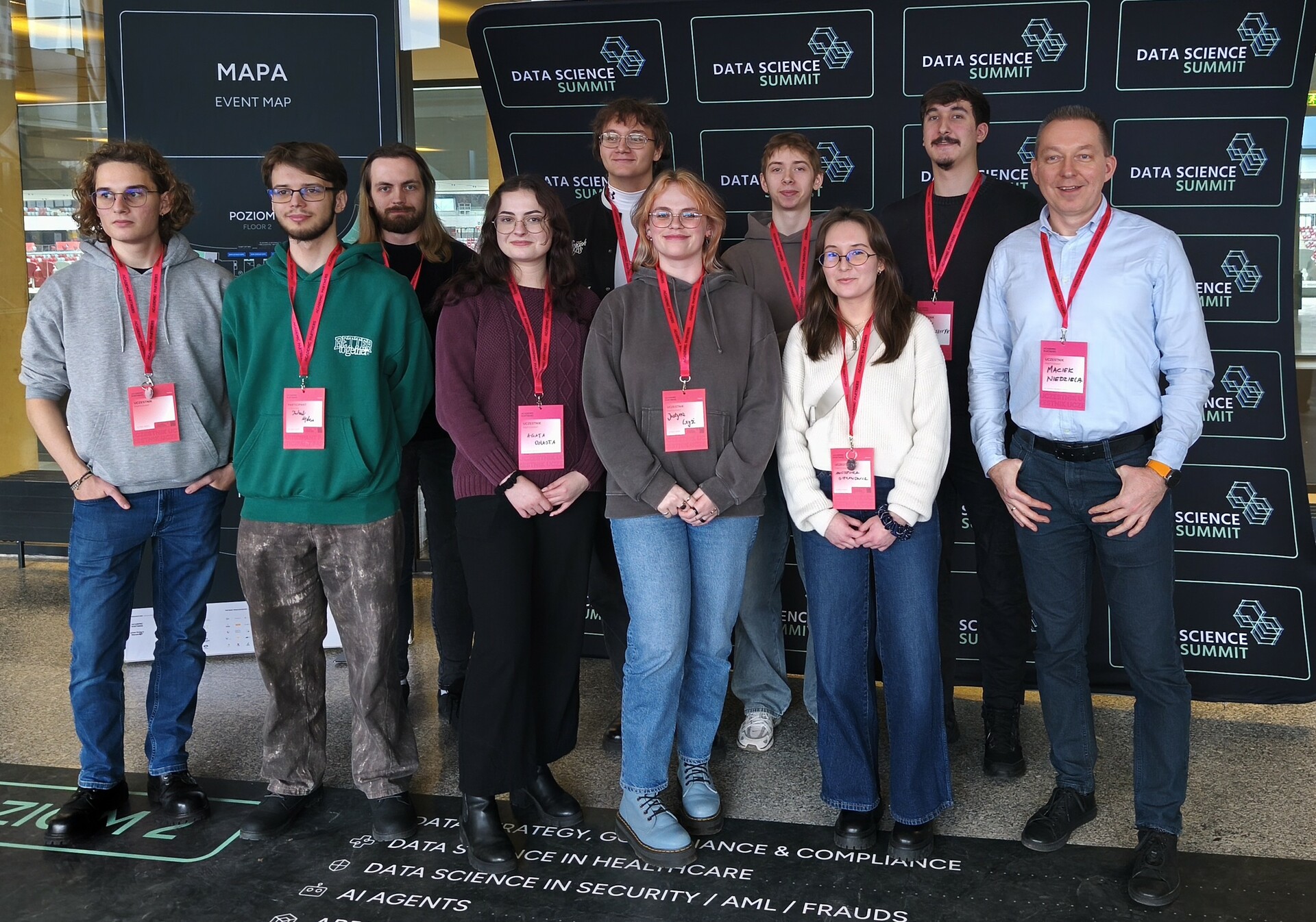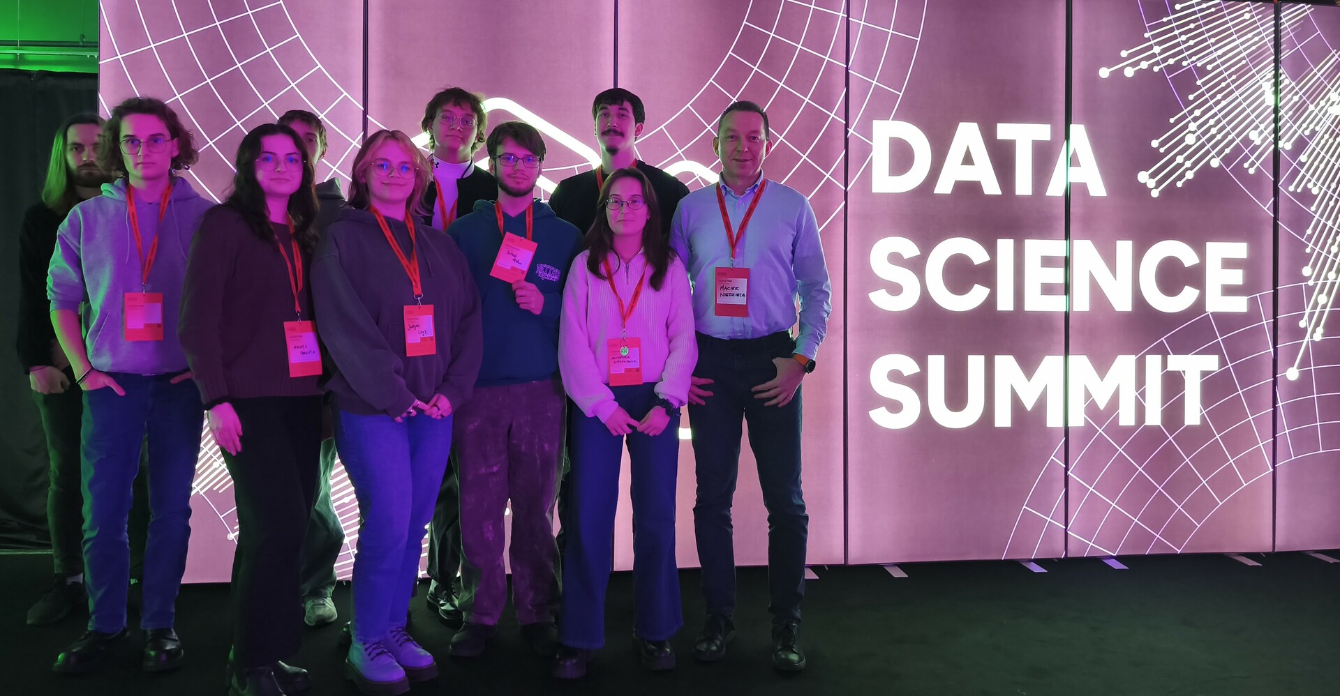 Członkowie Koła Naukowego Matematyki Stosowanej Insight mieli okazję poszerzyć swoje horyzonty podczas dwóch ciekawych wyjazdów. Najpierw studenci uczestniczyli w konferencji Data Science Summit 2025 w Warszawie - jednym z najważniejszych wydarzeń w Polsce poświęconych analizie danych, uczeniu maszynowemu, przetwarzaniu sygnałów i wdrożeniom AI. Udział w wydarzeniu wpłynął na rozwój kompetencji zespołu, związanych z zaawansowaną analizą danych przestrzennych oraz tworzeniem autorskich algorytmów do przetwarzania chmur punktów.
