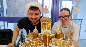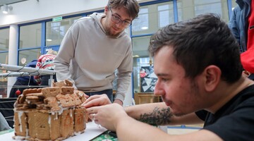Stałym już puntem w świąteczny programie był też - zorganizowany po raz siódmy - Konkurs na Najlepszą Budowlę z Piernika. Konkurencja odbyła się na kampusie A i zebrała 90 studentów z takich kierunków jak: architektura, inżynieria lotnicza, inżynieria środowiska, budownictwo, geoinformatyka i techniki satelitarne, inżynieria biomedyczna, automatyka i robotyka oraz psychologia. Co zbudowano tym razem? Samolot, choinkę, kościoły, dom Shreka, Wieżę Eiffla, a nawet Titanica! Jak co roku, konkurs pokazał, jak kreatywni i uzdolnieni manualnie są nasi studenci. Co więcej, podczas wydarzenia smakowite zapachy roztaczały się po całym budynku.