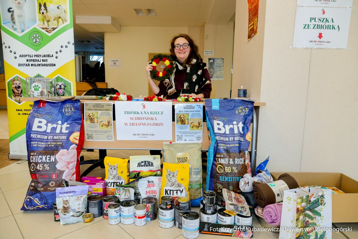 Swoją cegiełkę dla Schroniska dla bezdomnych zwierząt dorzuciła także Rada Studentów z Niepełnosprawnościami UZ, która zorganizowała tygodniową zbiórkę na kampusie B. Można było wówczas ofiarować karmę, koce oraz akcesoria.